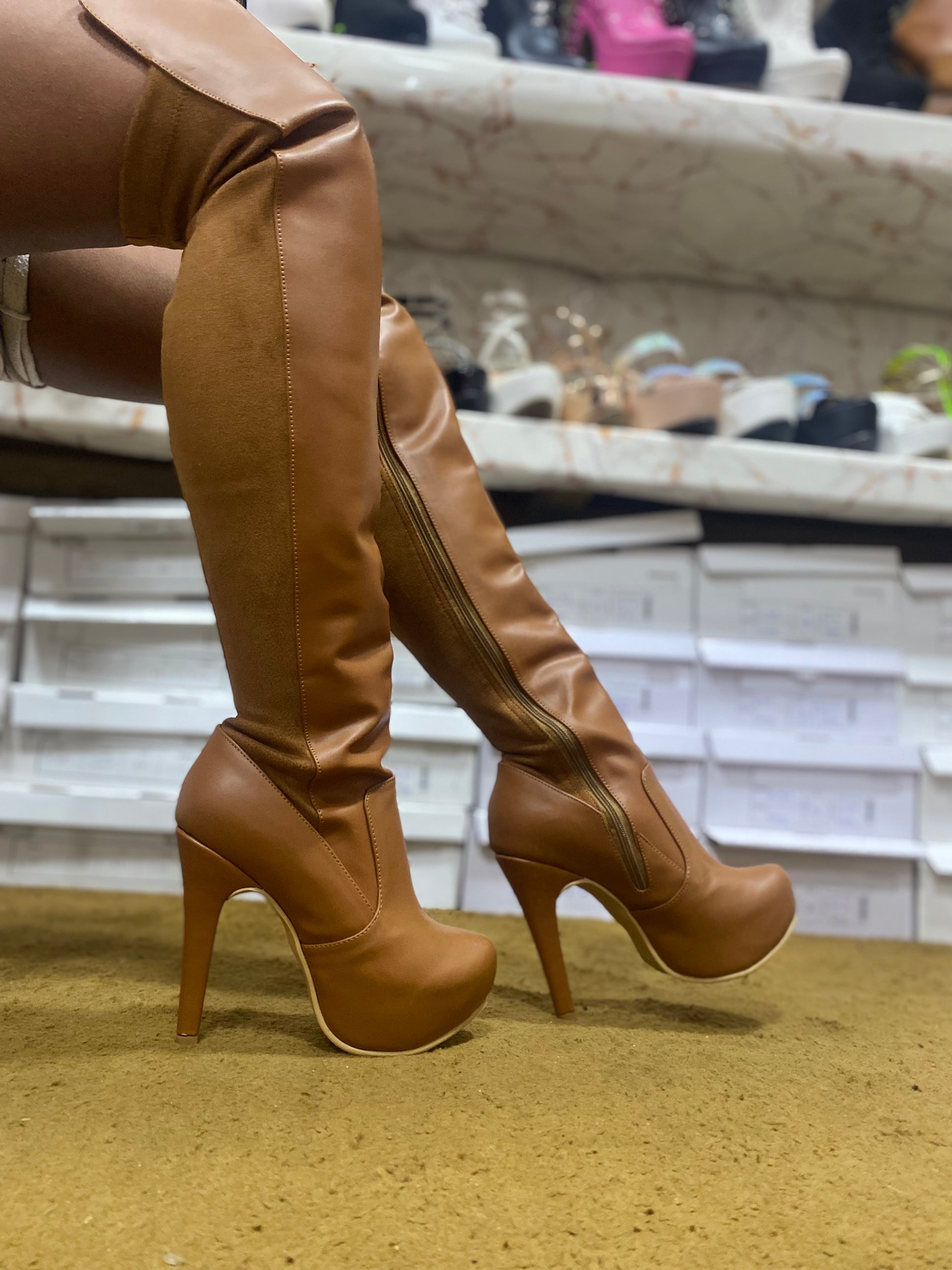 Confeccionada en biocuero premium con detalles elásticos, la BUCANERA COLOMBA combina elegancia y comodidad. Su taco fino de 12 cm se equilibra con una plataforma de 5 cm, proporcionando altura sin sacrificar estabilidad. Su diseño elasticado garantiza un ajuste perfecto a la pierna.